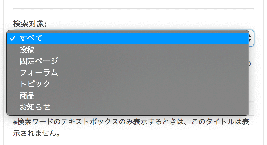 例えば、検索対象を「投稿」に限定することで、固定ページの余計なコンテンツが検索結果に表示されないようにしたり、WooCommerce で自動的に作られたカスタム投稿タイプの「商品」を対象にすれば、商品検索専用の高度な検索フォームを柔軟に設置できます。