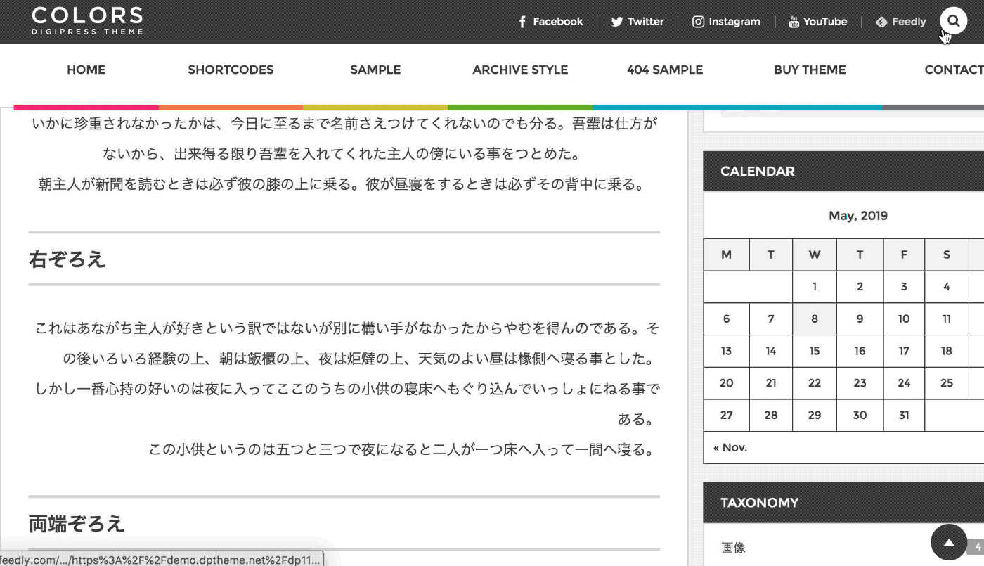 サイト上部に表示されるヘッダーバー内にもサイト内検索フォームを設置することができます。